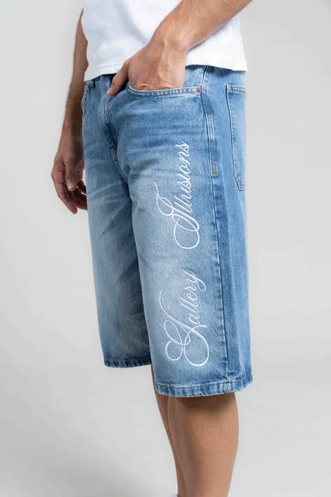 Bermuda con BORDADO en la parte delantera , Tela rigida color azul